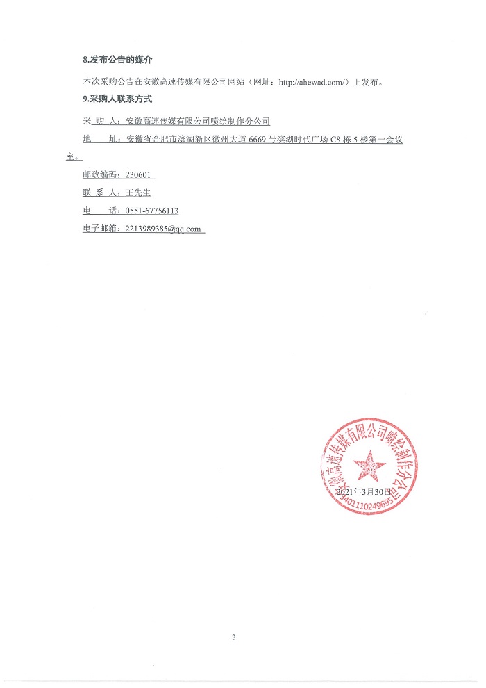 2021年户外广告喷绘画布成品画面公开询比采购公告