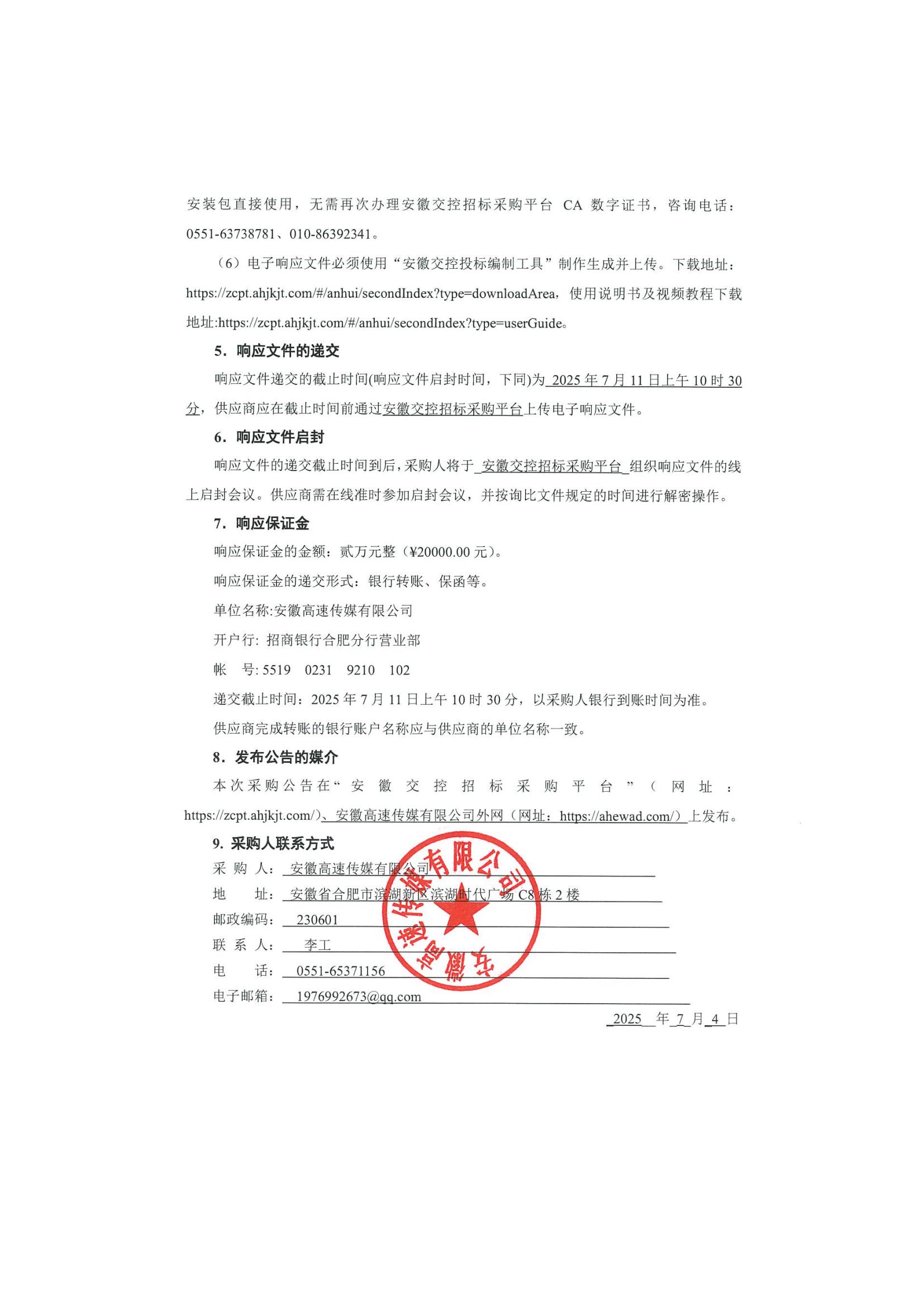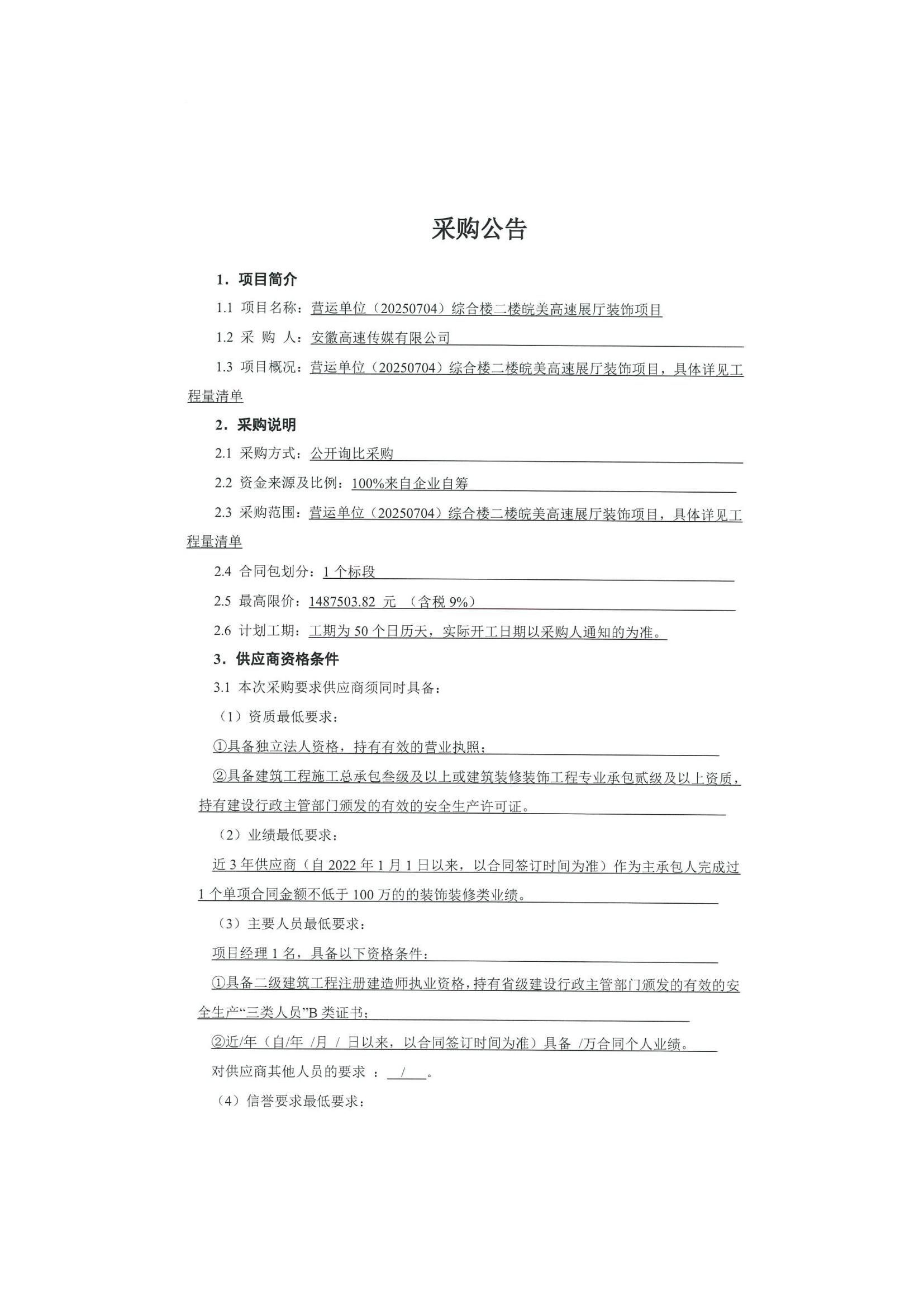 营运单位(20250704)综合楼二楼皖美高速展厅装饰项目采购公告