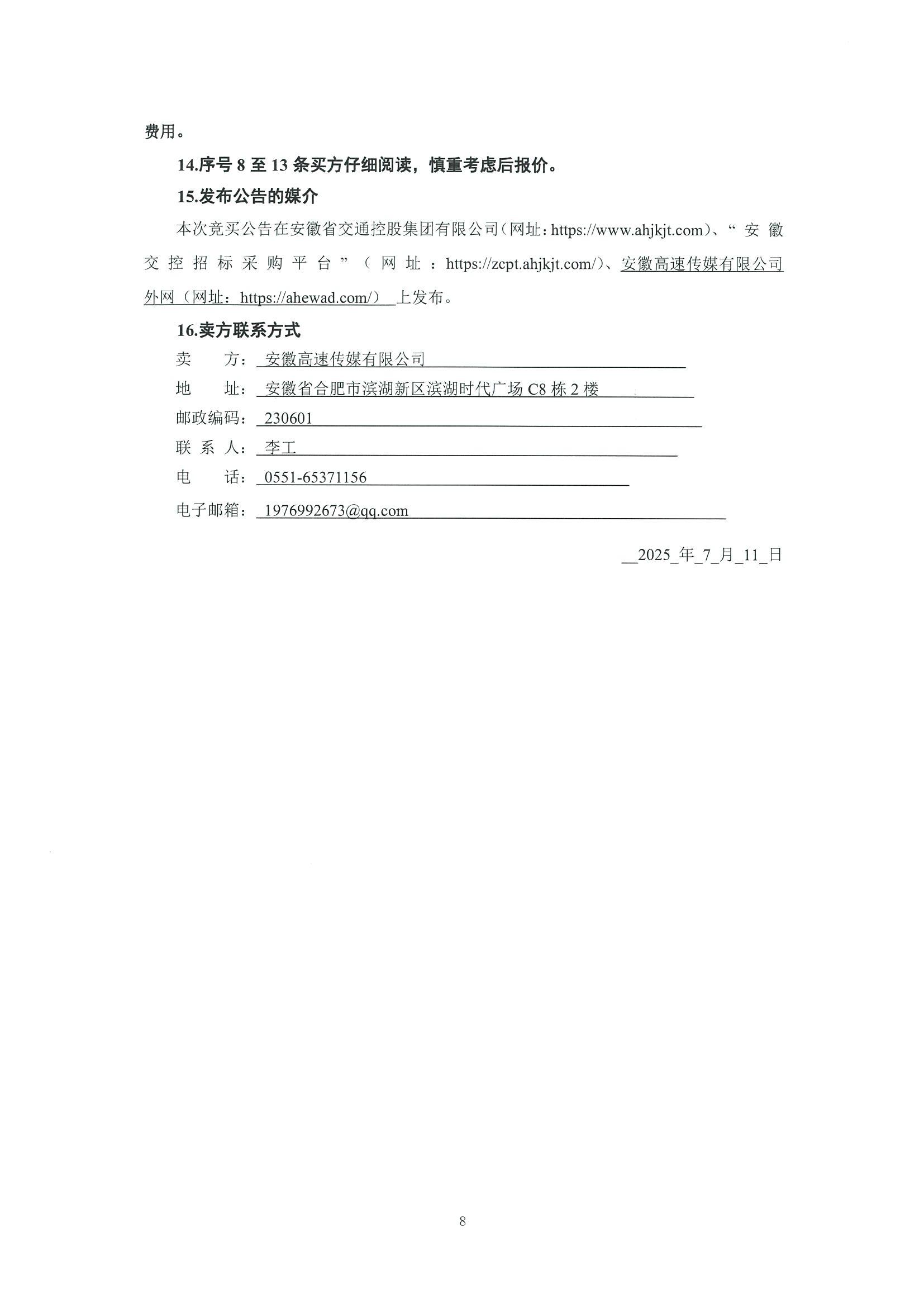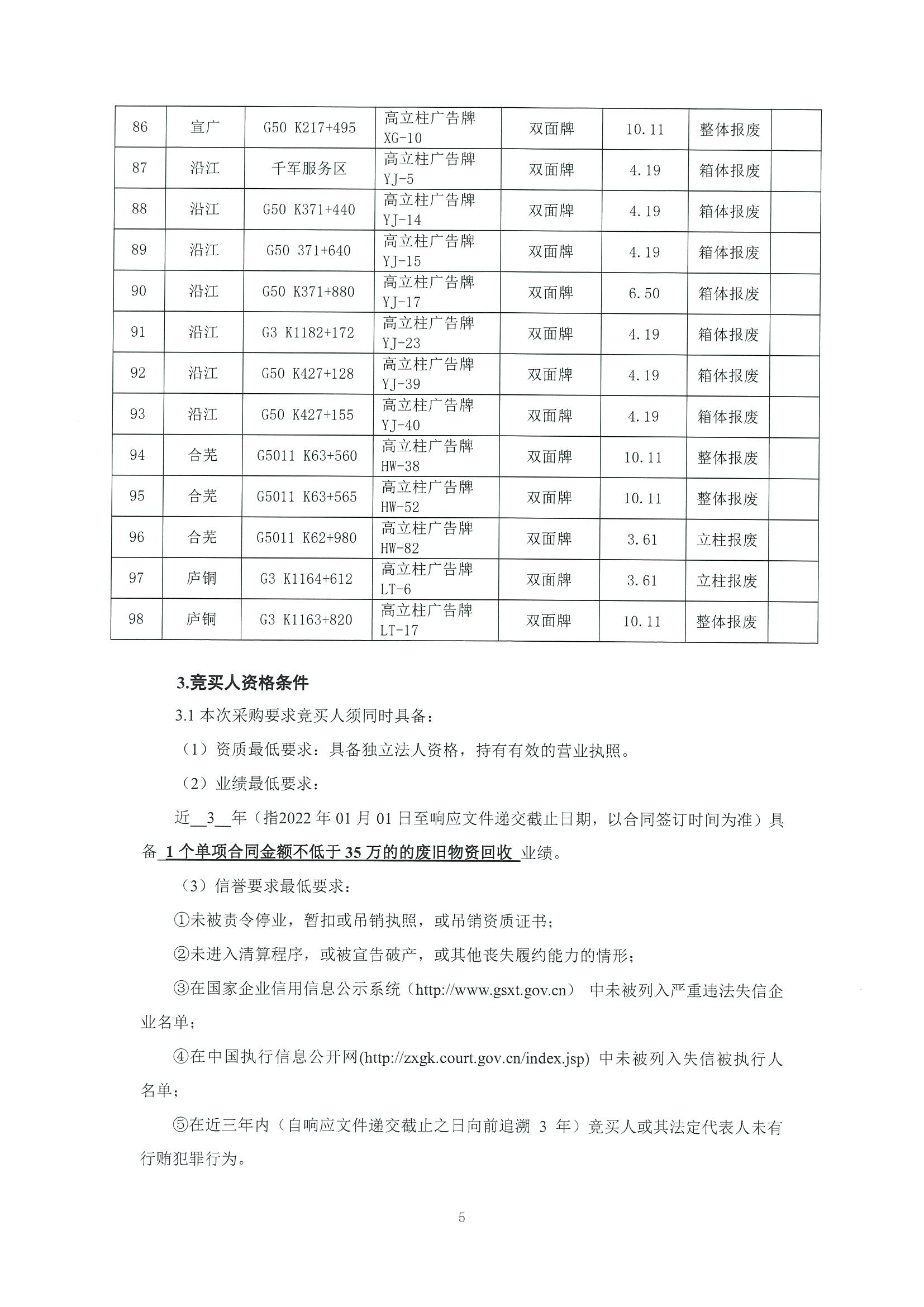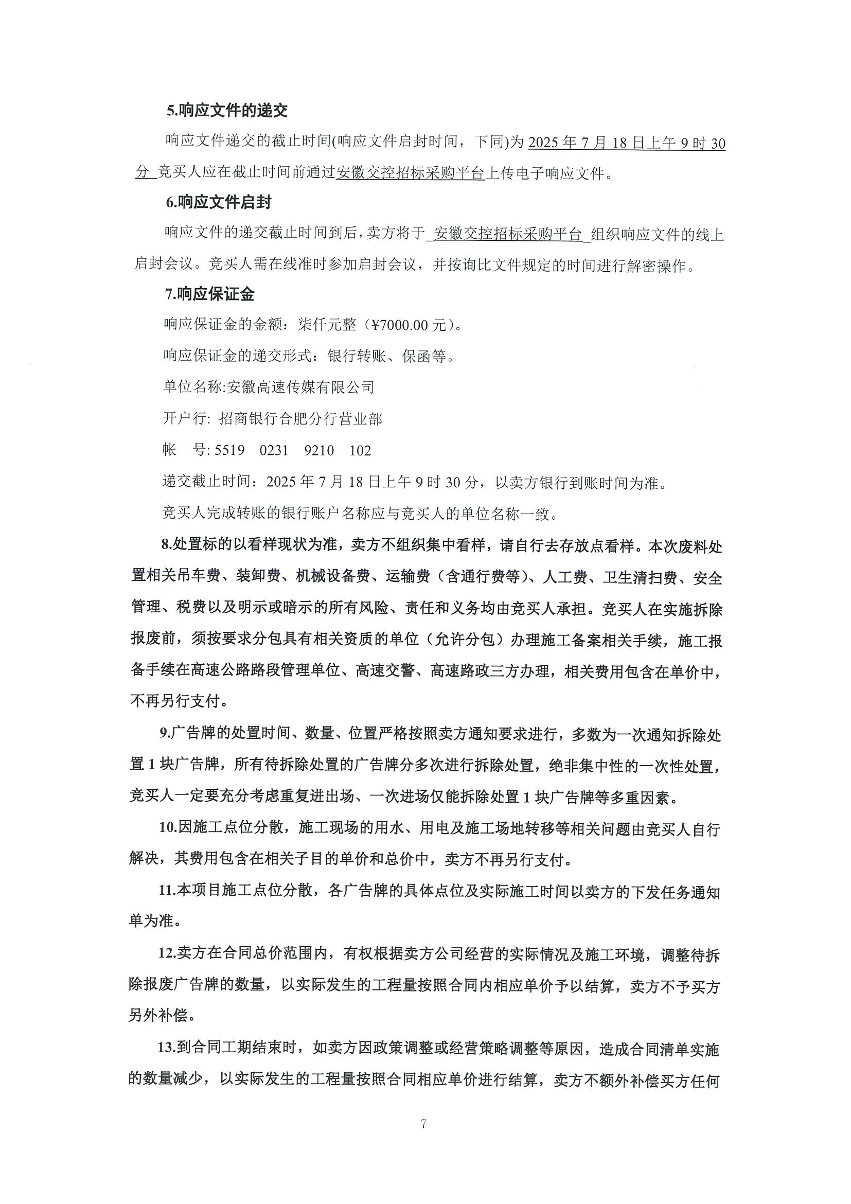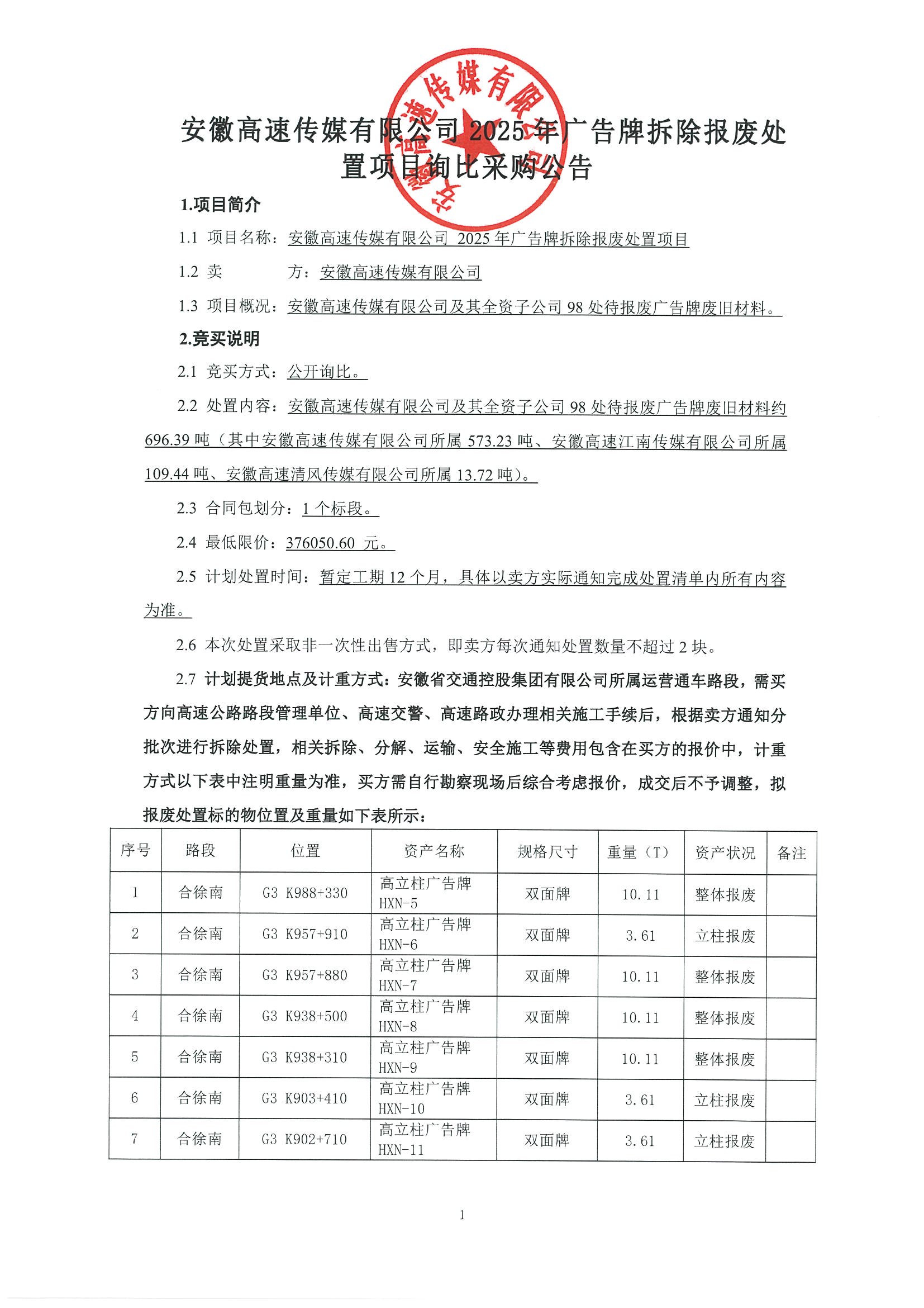 安徽高速传媒有限公司2025年广告牌拆除报废处置项目询比采购公告