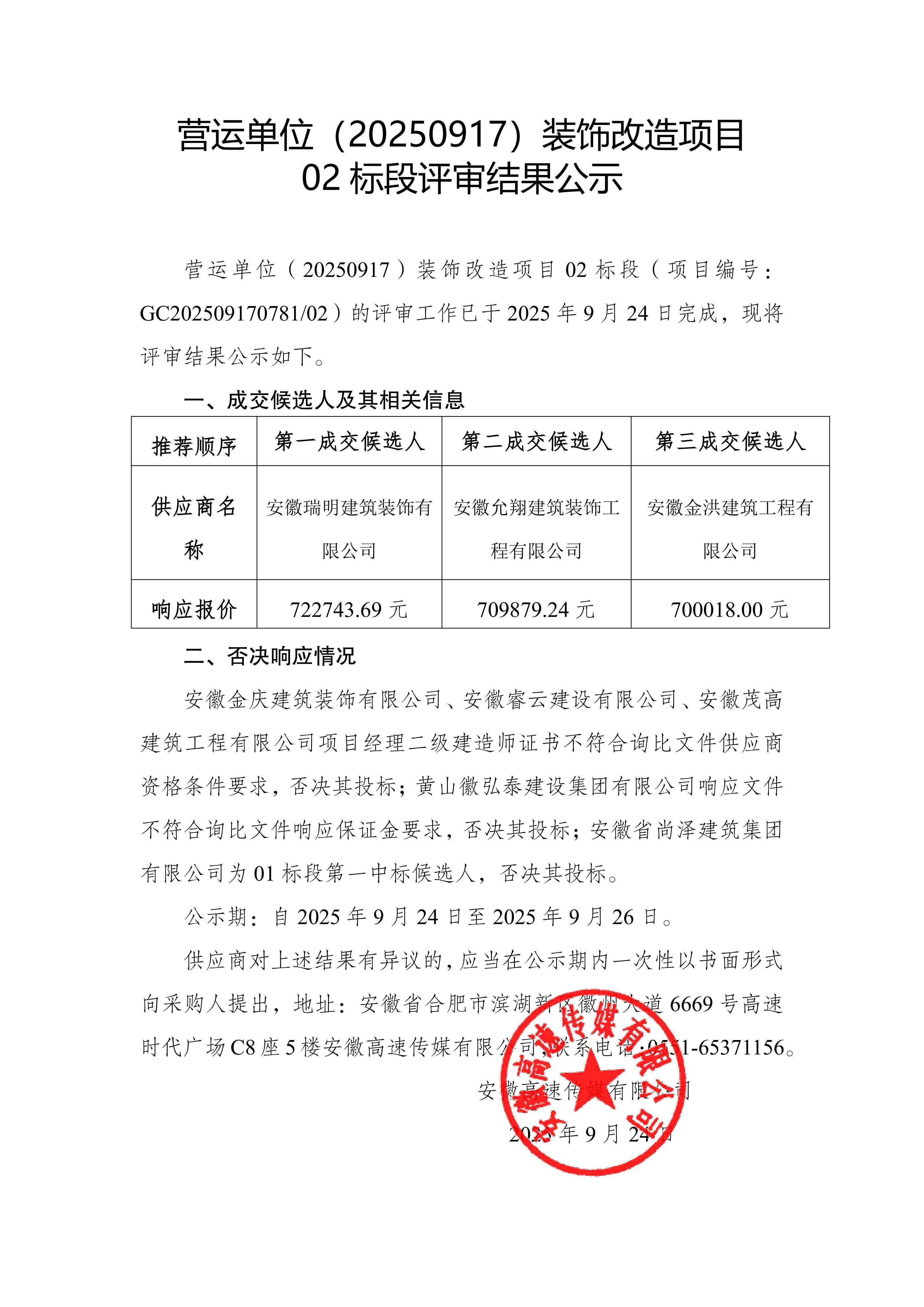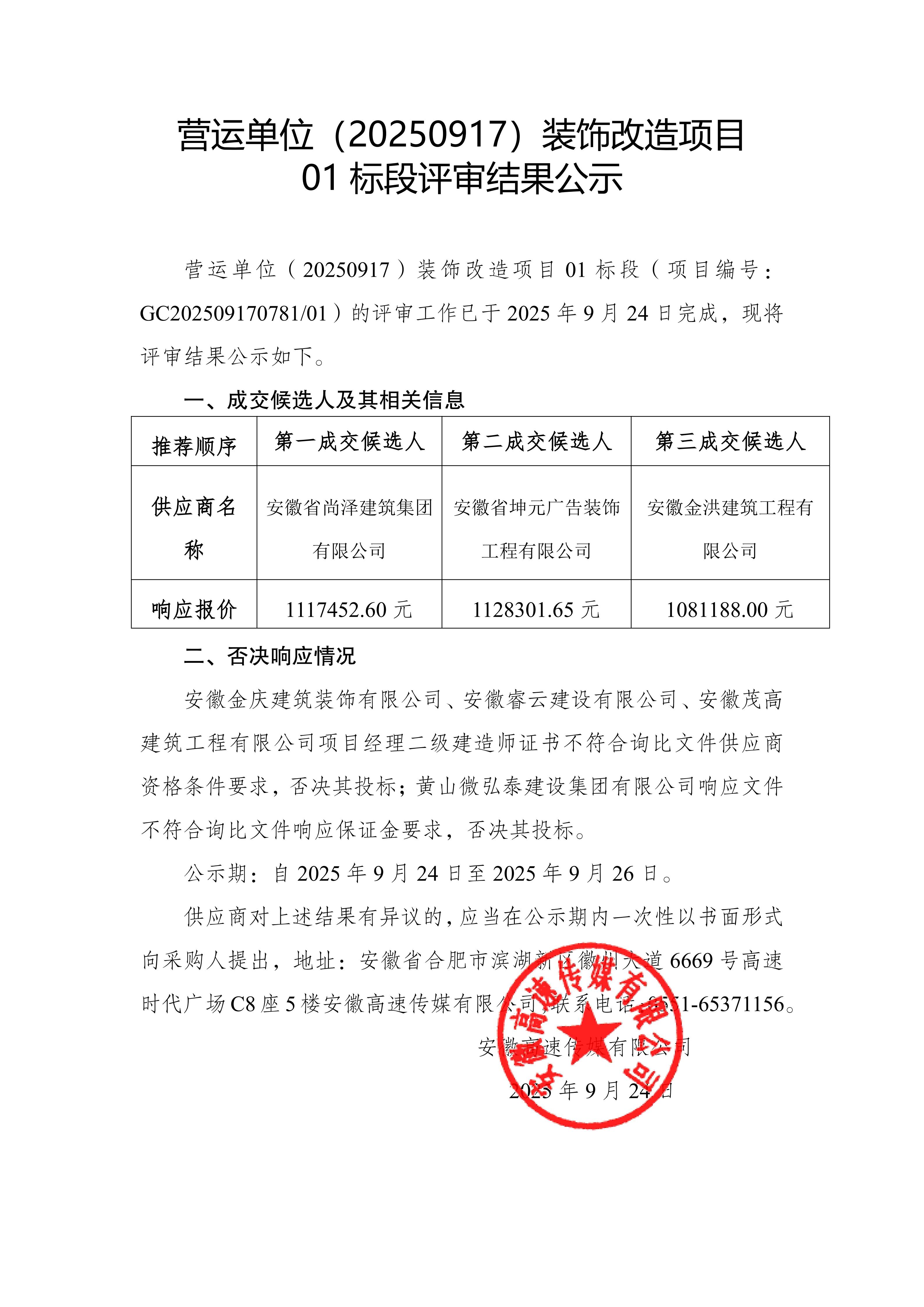 营运单位(20250917)装饰改造项目评审结果公示