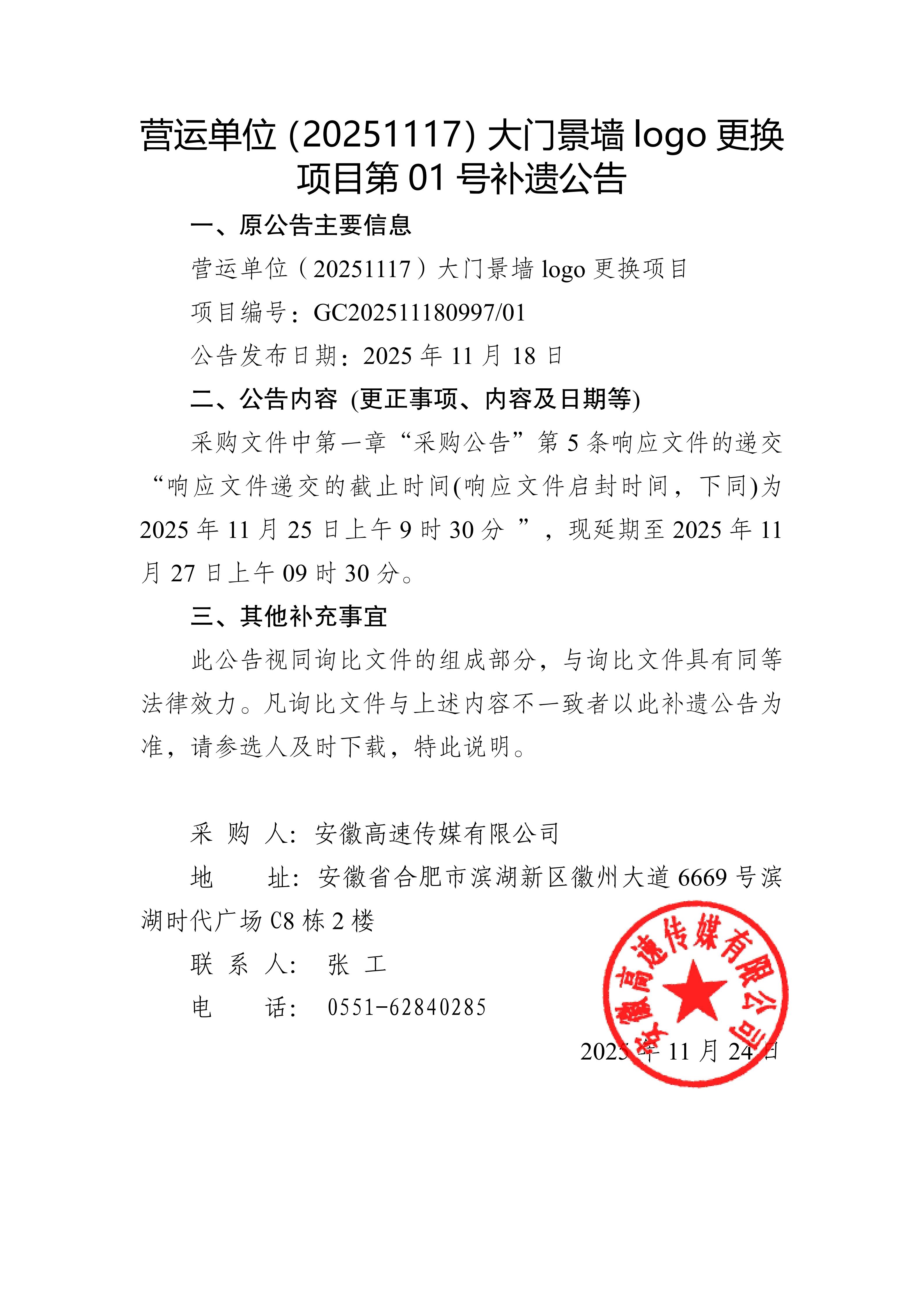 营运单位(20251117)大门景墙 logo 更换 项目第 01 号补遗公告