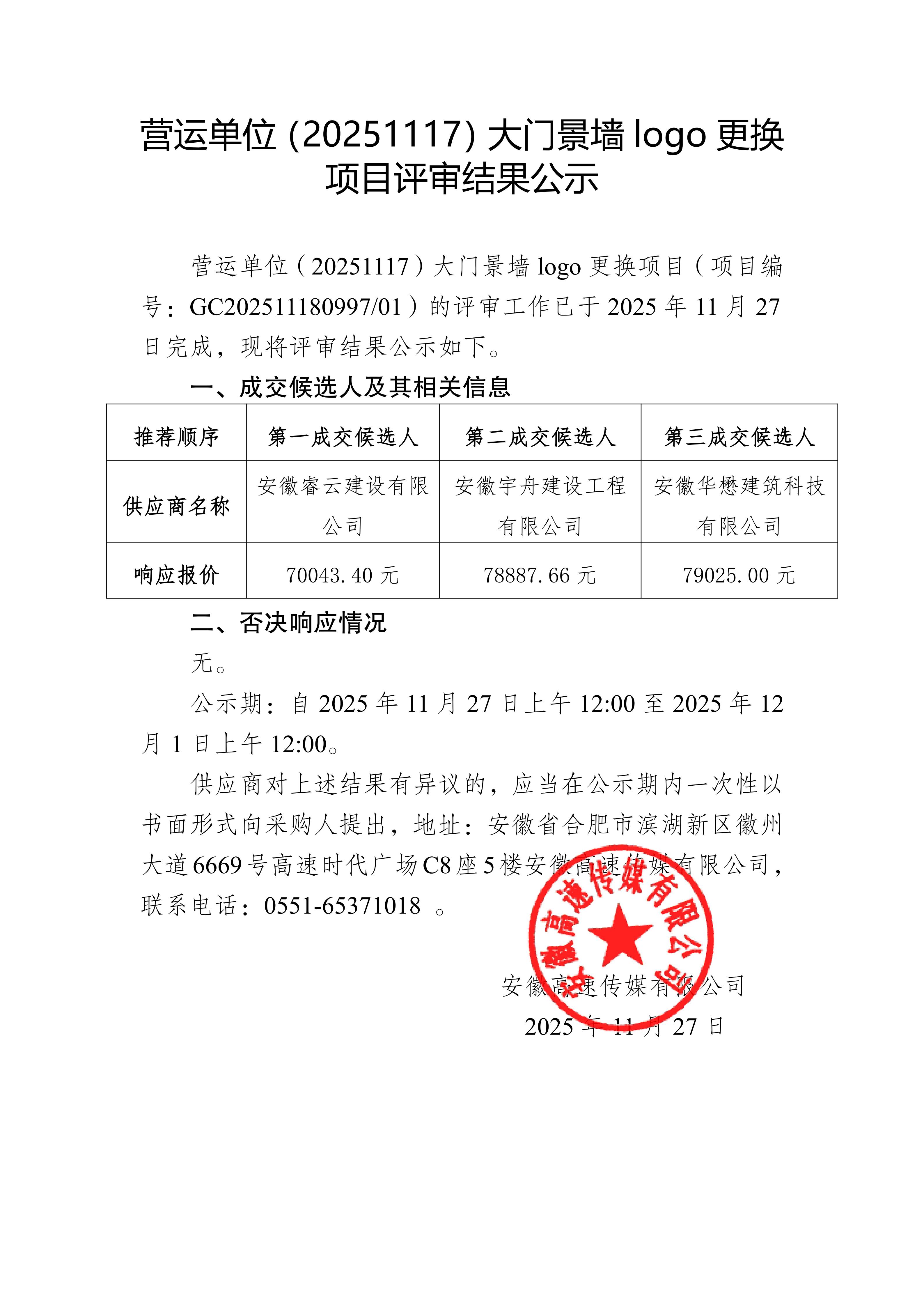 营运单位(20251117)大门景墙logo更换项目评审结果公示
