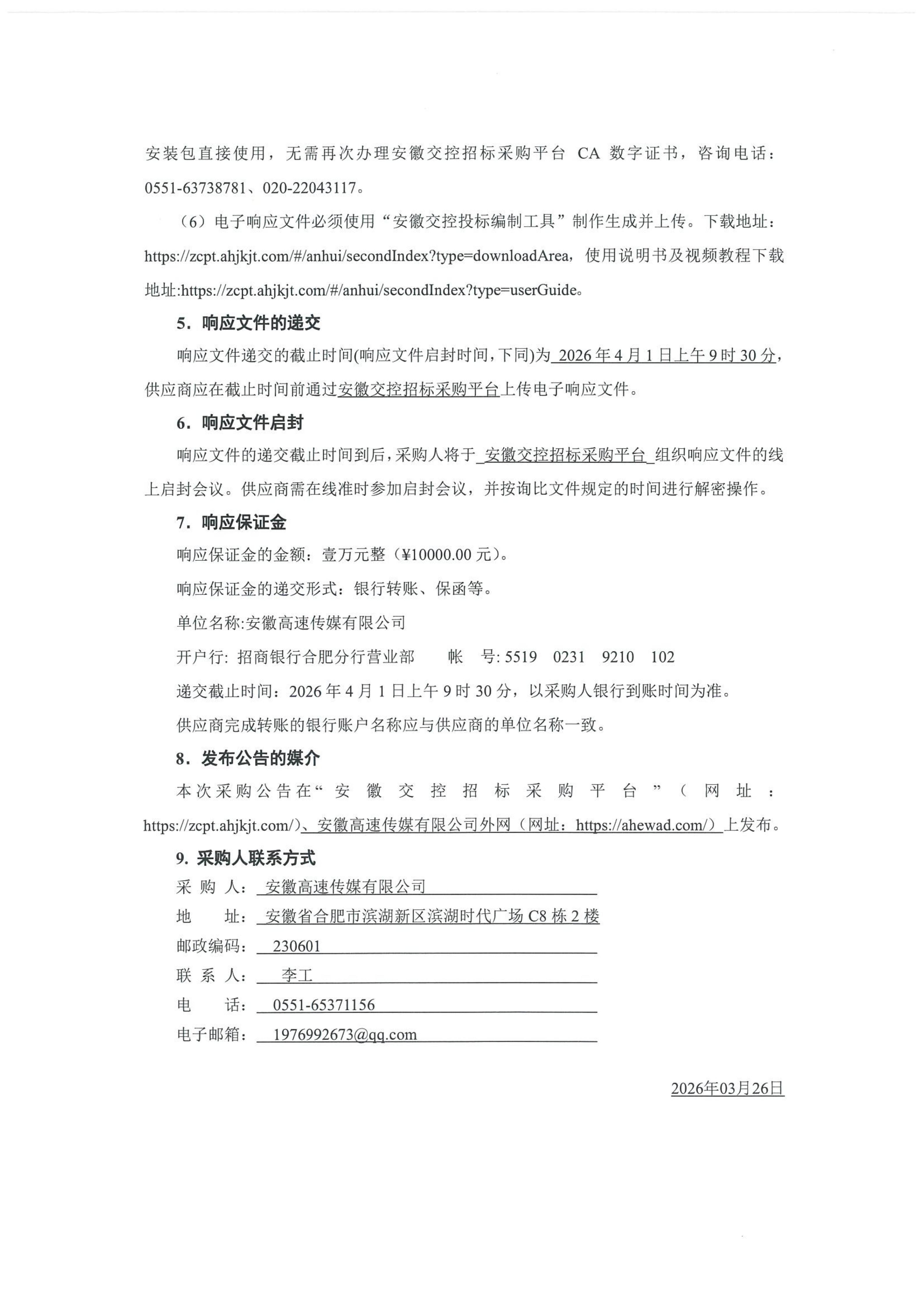 安徽高速传媒有限公司2026年收费站防撞柱灯箱建设、维护工程采购公告