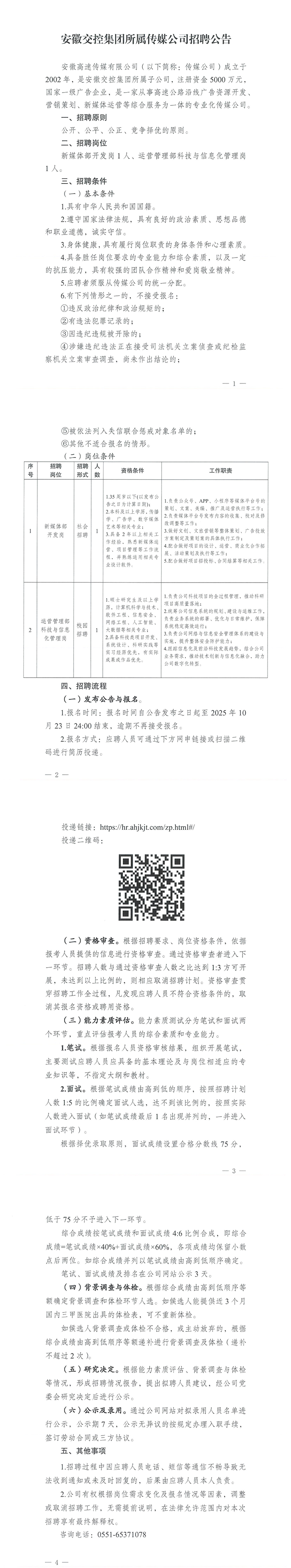 安徽交控集团所属传媒公司招聘公告